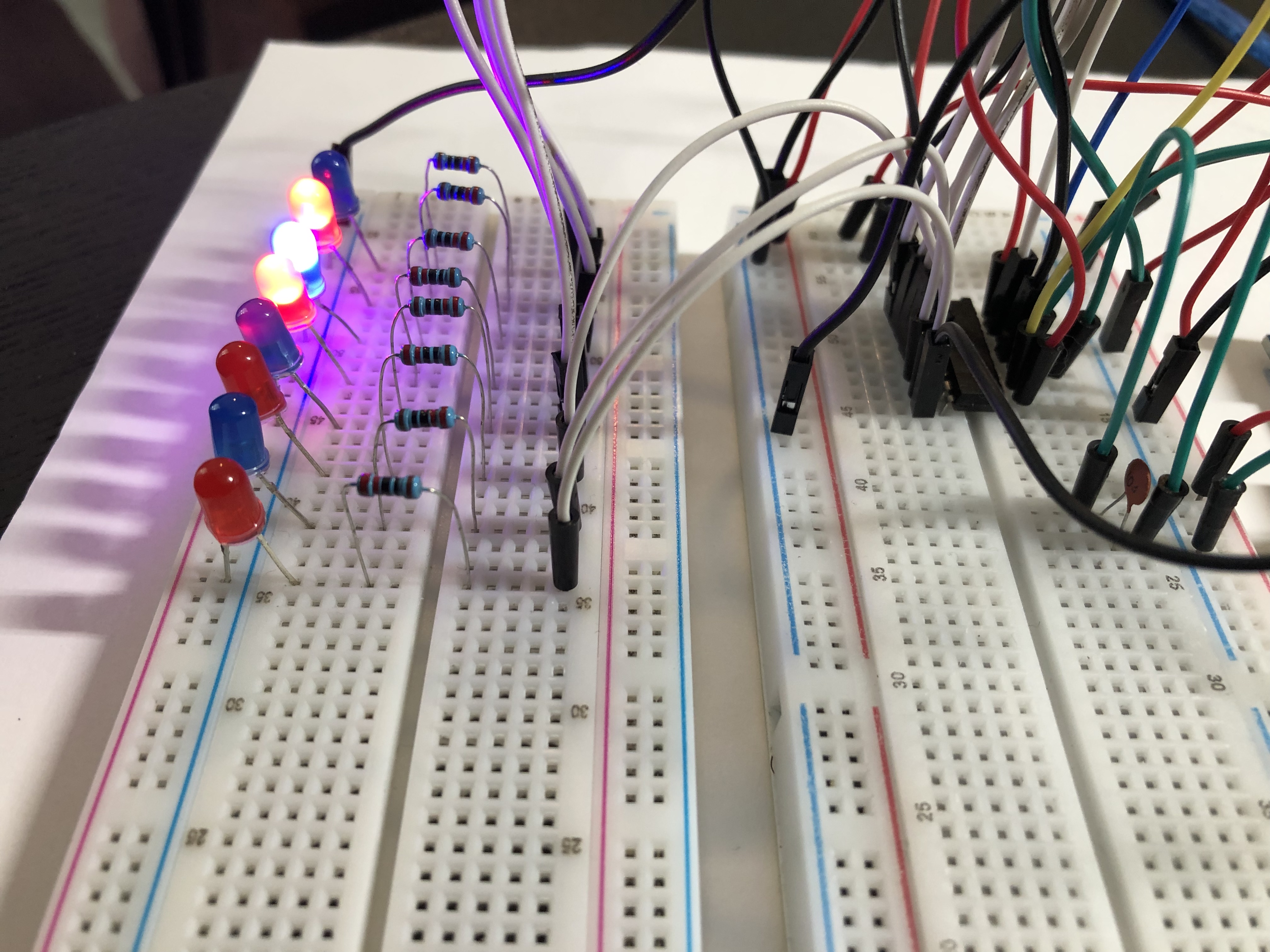 Notice that we are first setting the latchPin to LOW (off) and then shifting our data in and then setting the latchPin back to HIGH (on). As mentioned earlier, if we don’t do that, our LEDs will flicker as data moves through different pins during input. When latch pin is off, all input bits are stored in storage register and when latch pin is on, all stored bits will be shifted out.