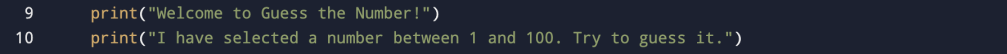 print("I have selected a number between 1 and 100. Try to guess it.")