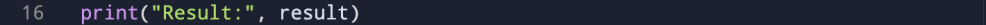 The “print” statement displays the result of the calculation to the user. If a valid operator was entered, the result is shown; otherwise, a message will return saying “Invalid Operator”.
